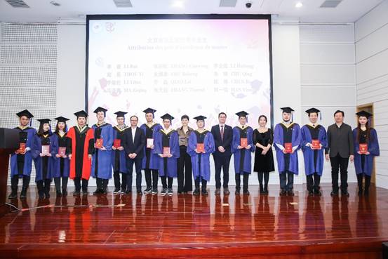 Le professeur Romain SOUBEYRAN a également prononcéun discours lors de la cérémonie de remise des diplômes. Il a félicité lesdiplômés d'avoir choisi l'excellent modèle de formation internationalesino-française et d'avoir réussi le diplôme d'ingénieur. Il a souligné que dansl'ère actuelle, la structure des connaissances est mise à jour et remplacéerapidement, et que les ingénieurs ne peuvent pas se plonger dans lesréalisations passées, ils doivent continuer à renforcer l'apprentissage. Enmême temps, il espère que les diplômés pourront toujours rester en contact avecl’école, renforcer les liens entre les groupes d'anciens élèves grâce à desstages école-entreprise et à la coopération en matière de recherchescientifique, et récompenser l'école et l’université par leurs réalisationsprofessionnelles exceptionnelles. Le professeur Romain SOUBEYRAN a égalementexprimé sa gratitude au président de l'Université Beihang ainsi qu'auxprofesseurs et au personnel qui ont contribué à la coopération entre la Chineet la France. L'Ecole Centrale de Pékin peut devenir une excellente écoleinternationale d'ingénieurs généraux grâce à leur soutien.